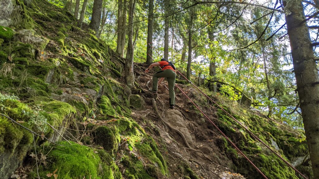 - Wetter: Bei Regenwetter ist die Begehung aufgrund der Rutschgefahr auf den Wurzeln und Felsen NICHT zu empfehlen.